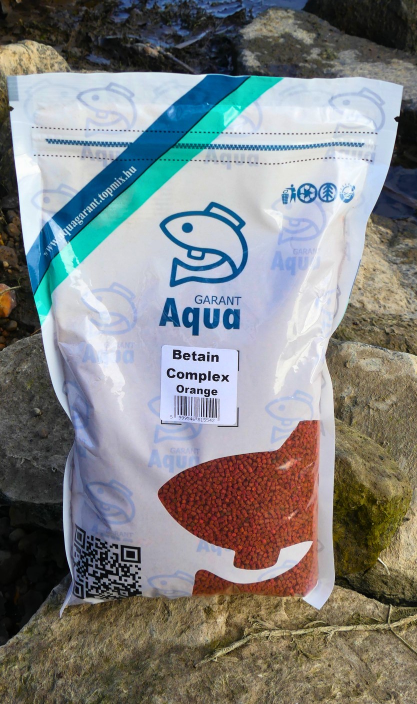 Mešavina sa specijalnim dodatkom Aqua peleta, popularna među ribolovcima, koja osim visokog sadržaja proteina sadrži i optimalnu količinu betaina i boje. Betain, prirodni pojačivač apetita, široko se koristi kao aditiv za povećanje privlačnosti. Riba se u prepoznavanju hrane uglavnom oslanja na miris, koji stimulišu aminokiseline rastvorene u vodi, uključujući betain. Ovaj sastojak izaziva stimulaciju hranjenja, zbog čega se često koristi u ishrani riba uzgajanih na intenzivnoj nezi. Kada dospe u vodu, betain formira maglu koja privlači pažnju ribe dok tone. Aqua Betain Complex dolazi u pet različitih boja, omogućavajući kontrast sa dnom. U takmičarskim uslovima, kada je intenzitet ugriza smanjen, nova nijansa boje može povećati interes ribe za hranom. Linija Aqua Betain Complex je upravo razvijena za ovakve situacije.